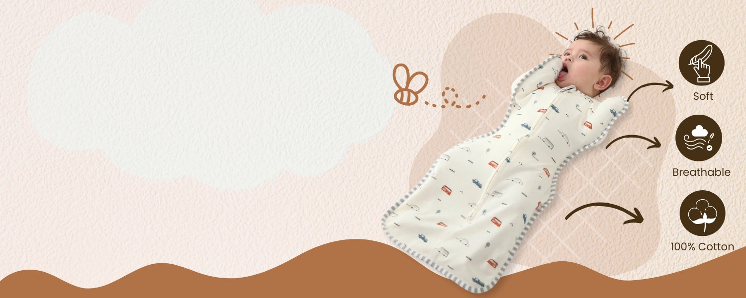 Our newborn swaddle is suitable from birth (0 months) up until your baby starts showing signs of rolling over—usually around 3–4 months. Once your little one begins rolling, it’s time to transition to our arms-free sleep options.